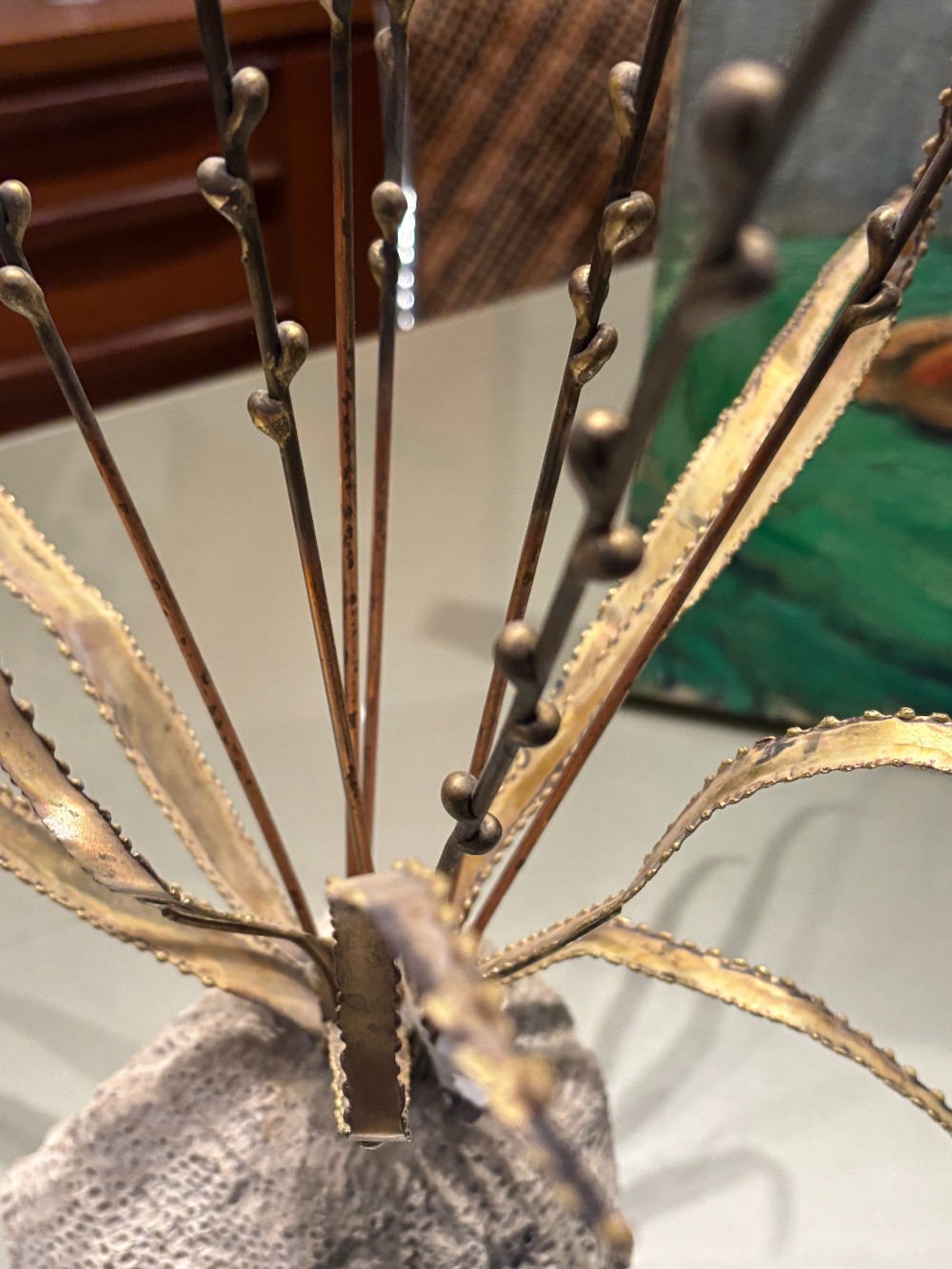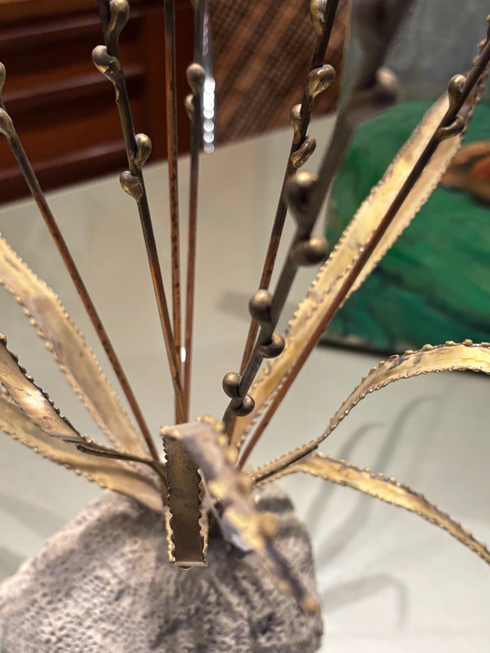 1970s vintage brass Pussy Willows sculpture, Brass and Stone-beautiful sculpture, perfect for bookshelf art!