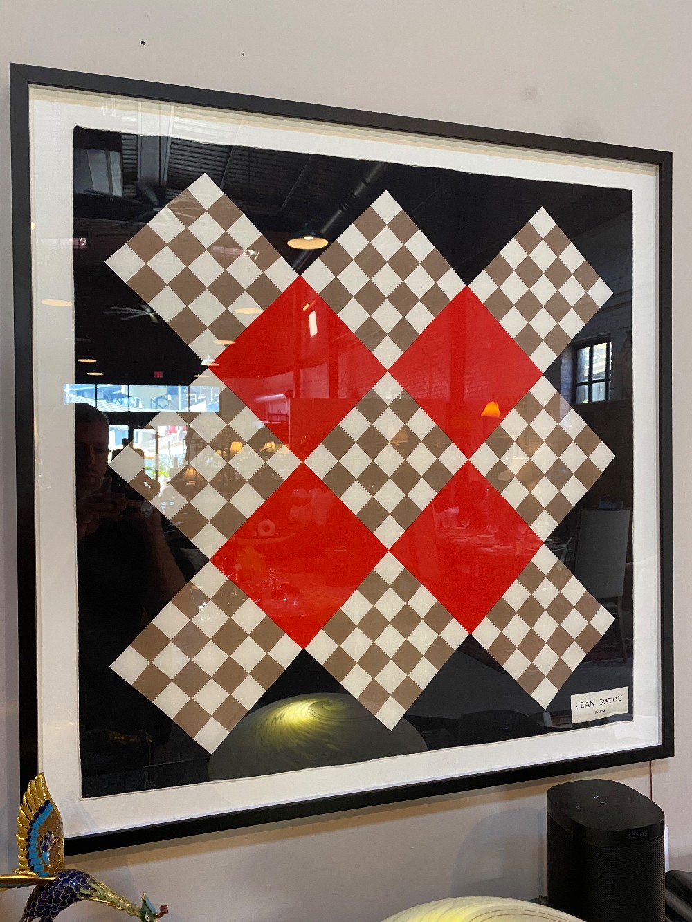 Home / Art / Vintage Brown/Orange Checker Jean Patou Scarf 35”x 35"