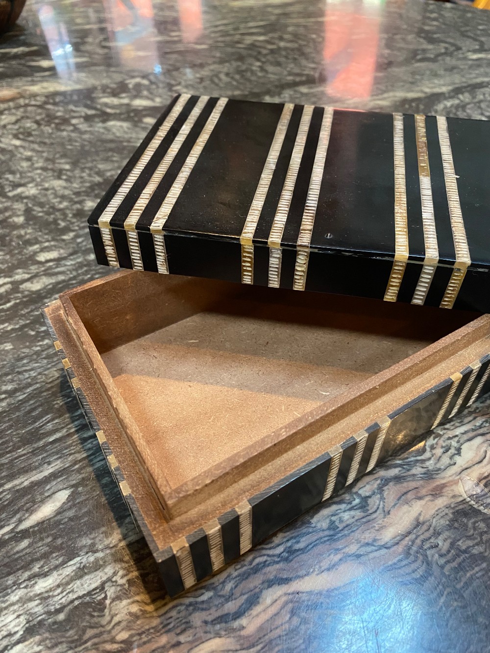 Home / Decor / Striped Black and White Carved Bone Box - Sm
